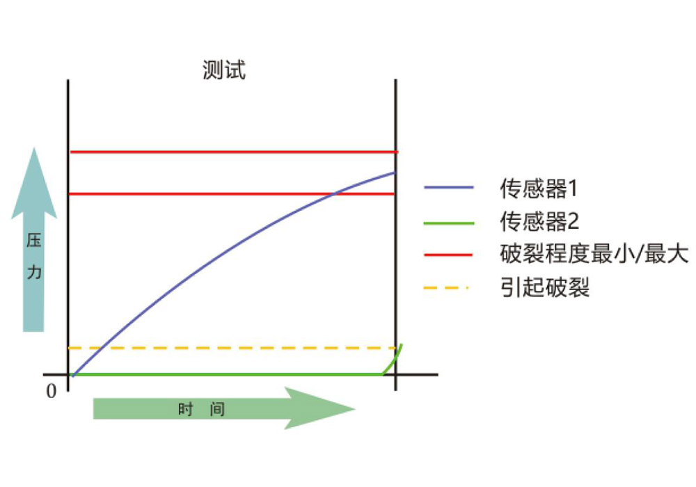 爆裂測(cè)試可以用于破壞性和非破壞性測(cè)試的應(yīng)用,系統(tǒng)有一個(gè)專(zhuān)門(mén)用于爆裂測(cè)試的傳感器。假設(shè)往一個(gè)樣品中通氣,隨著氣壓不斷增加,測(cè)試部件會(huì)經(jīng)過(guò)一個(gè)升壓過(guò)程,破裂點(diǎn)或是一個(gè)很小的氣壓降都會(huì)被內(nèi)置的傳感器感知。這個(gè)氣壓下降表明爆裂過(guò)程發(fā)生,峰值氣壓被記錄下來(lái),并比較設(shè)定的規(guī)格來(lái)確定是否合格。